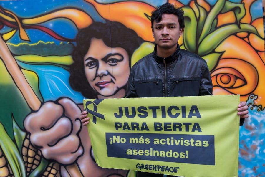 Im März dieses Jahres wurde die Menschen- und Umweltaktivistin Berta Caceres von Unbekannten in ihrem Haus erschossen. Berta Caceres setzte sich seit Jahren für die Rechte indigener Völker ein und stellte sich gegen Staudämme und Bergwerke in der unberührten Urwaldregion Honduras. Greenpeace fordert zusammen mit Bertas Sohn Salvador Zuniga Caceres eine Klärung des Mordes an seiner Mutter und Gerechtigkeit vor Gericht.