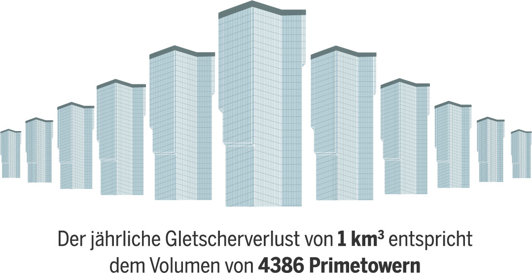 Auch die Eisdicke ging dramatisch zurück. Der Glaziologe Matthias Huss von der ETH Zürich/Universität Freiburg schätzt das Eisvolumen für 1850 auf rund 130 km³. 2016 waren es noch 54 km³, also fast 60 Prozent weniger. «Die Schweizer Gletscher kann man nicht mehr retten», sagt Huss. Selbst mit den grössten Anstrengungen zur CO2-Reduktion würden 80 bis 90 Prozent der Eismassen bis ins Jahr 2100 verloren gehen. «Eine Verlangsamung der Erderwärmung kommt für die Schweizer Gletscher zu spät», so Huss. Auch Samuel Nussbaumer vom World Glacier Monitoring Service der Universität Zürich sieht keine Rettung: «Ich hoffe einzig darauf, dass wir wenigstens die höchstgelegensten Gletscher der Alpen zumindest in Bruchstücken erhalten können.»