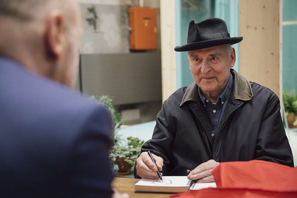 Sprayer von Zürich, Anwalt der Fische oder einfach nur Schmierfink – Harald Naegeli wurden in seinen 81 Lebensjahren bereits viele Beinamen verliehen. Nun reiht sich ein Weiterer ein: Freund von Greenpeace. Denn der Schweizer Künstler überlässt der Organisation anlässlich des 50-Jahre-Jubiläums mehrere seiner Werke zur Auktion. Ein Porträt.