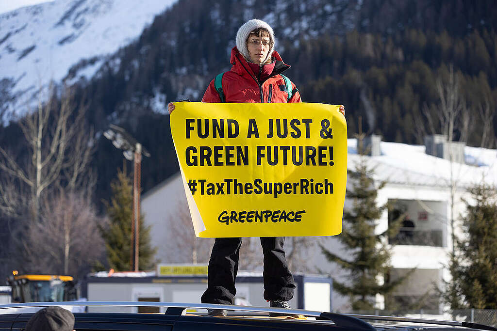 Agnes Jezler, Greenpeace-Expertin für ökonomischen und gesellschaftlichen Wandel, sagt: «Es ist ein Skandal, dass sich Politiker:innen, CEOs, die Reichen und Mächtigen in Davos versammeln, um endlos über globale Herausforderungen zu debattieren, während die Welt brennt und die Menschen damit kämpfen, ihre Grundbedürfnisse zu decken und mit den Folgen des drohenden Umweltkollaps umzugehen. Ungleichheit und Umweltkrise sind eng miteinander verbunden. Es gibt genügend finanzielle Mittel gegen die Umwelt- und Sozialkrise. Sie stecken nur in den falschen Taschen. Es ist Zeit, die Superreichen weltweit und verursachergerecht zur Kasse zu bitten.»