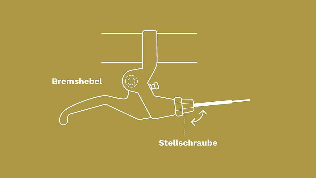 - Drehe die Stellschraube am Bremshebel bis zum Anschlag zurück und dann um eine halbe Umdrehung wieder raus.