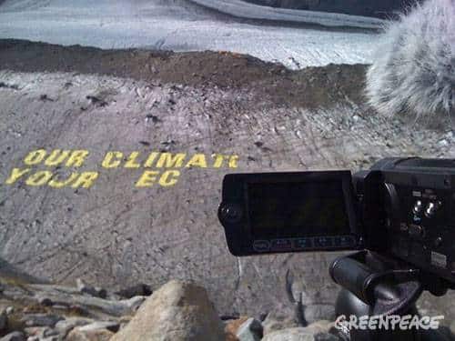 Gestern früh haben Greenpeace Aktivisten aus ganz Europa angefangen über 400 Kilogramm Material in die Höhe zu schleppen. Wir errichten ein Camp in den Schweizer Alpen um eine riesige Botschaft…