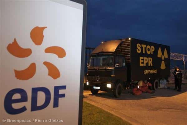 Zoom Greenpeace-Aktivisten protestieren gegen EDF Der Verdacht einer illegalen Überwachung von Greenpeace-Aktivisten in Frankreich hat sich zwar erneut bestätigt, die ganze Veranwortung wird nun aber einem einzigen „Sündenbock“ zur Last…