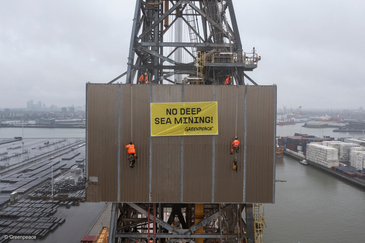Während die Internationale Meeresbodenbehörde (ISA) im jamaikanischen Kingston tagt und dort diskutiert, ob der Tiefseebergbau erlaubt werden soll, haben Greenpeace Aktivist:innen in Rotterdam mit einer aufsehenerregenden Aktion auf die Gefahren des Tiefseebergbaus hingewiesen.