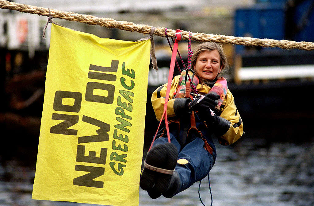 Noch viel wichtiger als das Banner selbst aber sind die Menschen, die dahinterstehen – und es hochhalten. Oder aus schwindelerregender Höhe herunterhängen lassen. Oder es bei eisigen Temperaturen im Wasser aufspannen. Oder, oder, oder … Es sind die Abertausenden Greenpeace-Aktivist:innen, die sich seit Jahrzehnten weltweit hartnäckig, mutig und – allem voran – gewaltfrei für den Umweltschutz einsetzen, und zwar an vorderster Front.