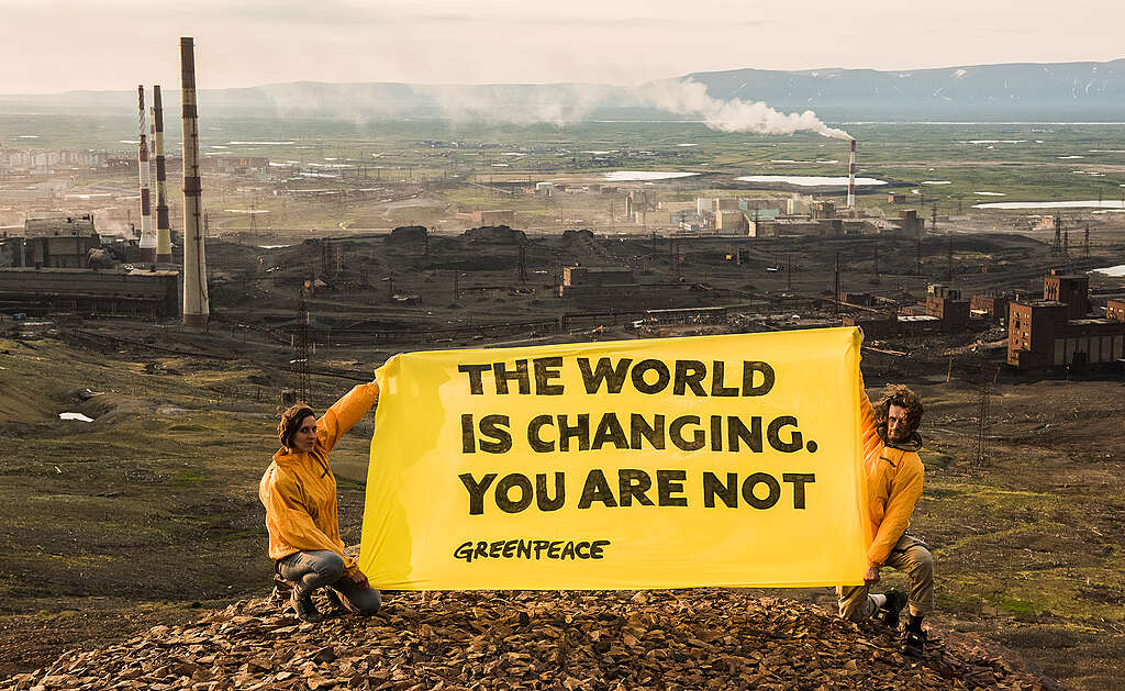Industrielandschaft von Norilsk, die nördlichste Stadt der Welt. Sie ist eine der drei einzigen Großstädte in der durchgehenden Permafrostzone und die am stärksten verschmutzte Stadt in Russland. © Dmitry Sharomov / Greenpeace