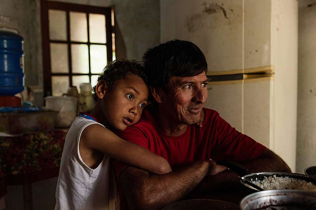 «Durch unsere Besetzungen üben wir Druck aus, damit etwas geschieht», sagt Celso Alves. Der 54-Jährige lebt mit seiner Frau und zwei kleinen Söhnen in der benachbarten Landlosen-Siedlung Roseli Nunes, benannt nach einer 1987 ermordeten MST-Führerin. Alves stammt aus Brasiliens Süden, wo viele Bauern und Bäuerinnen von der Soja- und Zuckerindustrie verdrängt wurden. Er schloss sich 1993 der Bewegung an. Heute baut er auf seinem Hof Gemüse, Früchte und Wurzelgemüse an, hält Schweine und Hühner.