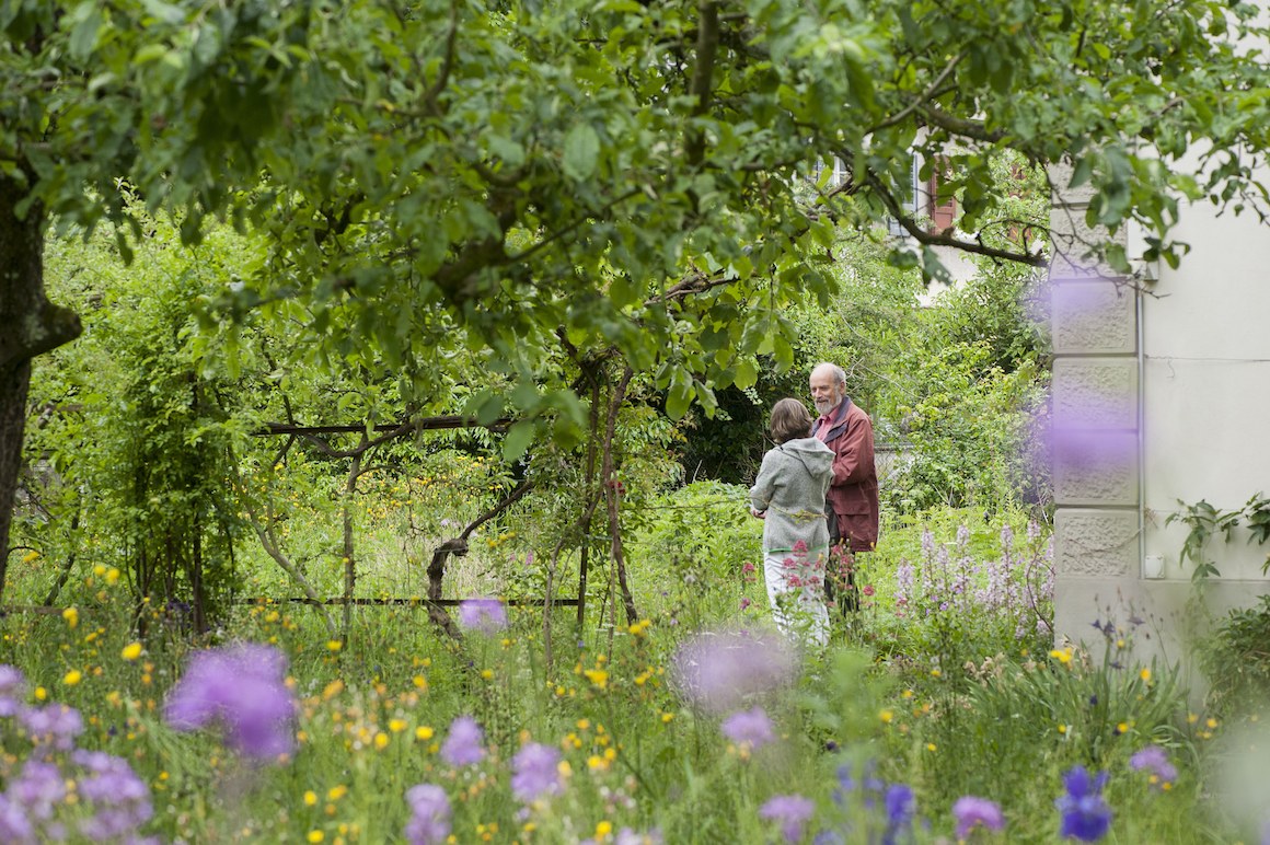 Mir ist, als wären wir in einem Dschungel. Verschlungene Pfade führen zwischen hohen Sträuchern hindurch, ein dichtes Obstspalier säumt den Weg, links und rechts unzählige wildblühende Pflanzen, Klettergewächse und Rosen. Der Solothurner Wildbienenspezialist Felix Amiet hat mich zu einem Rundgang durch seinen Garten eingeladen, um uns herum summt und brummt es unentwegt.