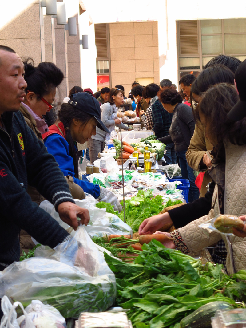 2010 begründete Uemura den «Beijing Farmer’s Market»: «Ich wollte gesundes Essen», erinnert sich Uemura. Zwei Stände gab es. Am Anfang kamen Freunde. Fast nur Ausländer. Man begann Diskussionen zu Lebensmittelsicherheit zu veranstalten. Ein Farmer’s Market nach amerikanischen Modell ist eine demokratische Kooperative, bei der jeder Marktstand über Entscheidungen mit abstimmen kann. Dann habe man einen Weibo-Account eingerichtet und es sei explodiert. Hunderte, Tausende kamen, alles Chinesen. Rund 80 000 Follower hat der Sina-Weibo-Account des Bauernmarkts mittlerweile. Während des arabischen Frühlings begann die Polizei zu patrouillieren. Einmal wurde der Markt geschlossen: Versammlungsverbot. Man muss sich fortan mit den Behörden arrangieren. Uemura wurde das alles zu viel, eine Chinesin führt nun die Geschäfte.