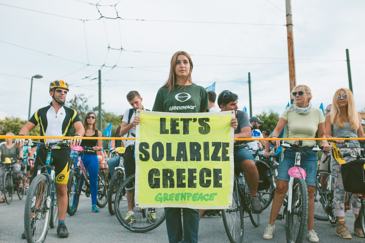Aktivisten an der Solarize Velo Demo in Athen © Greenpeace / Production House