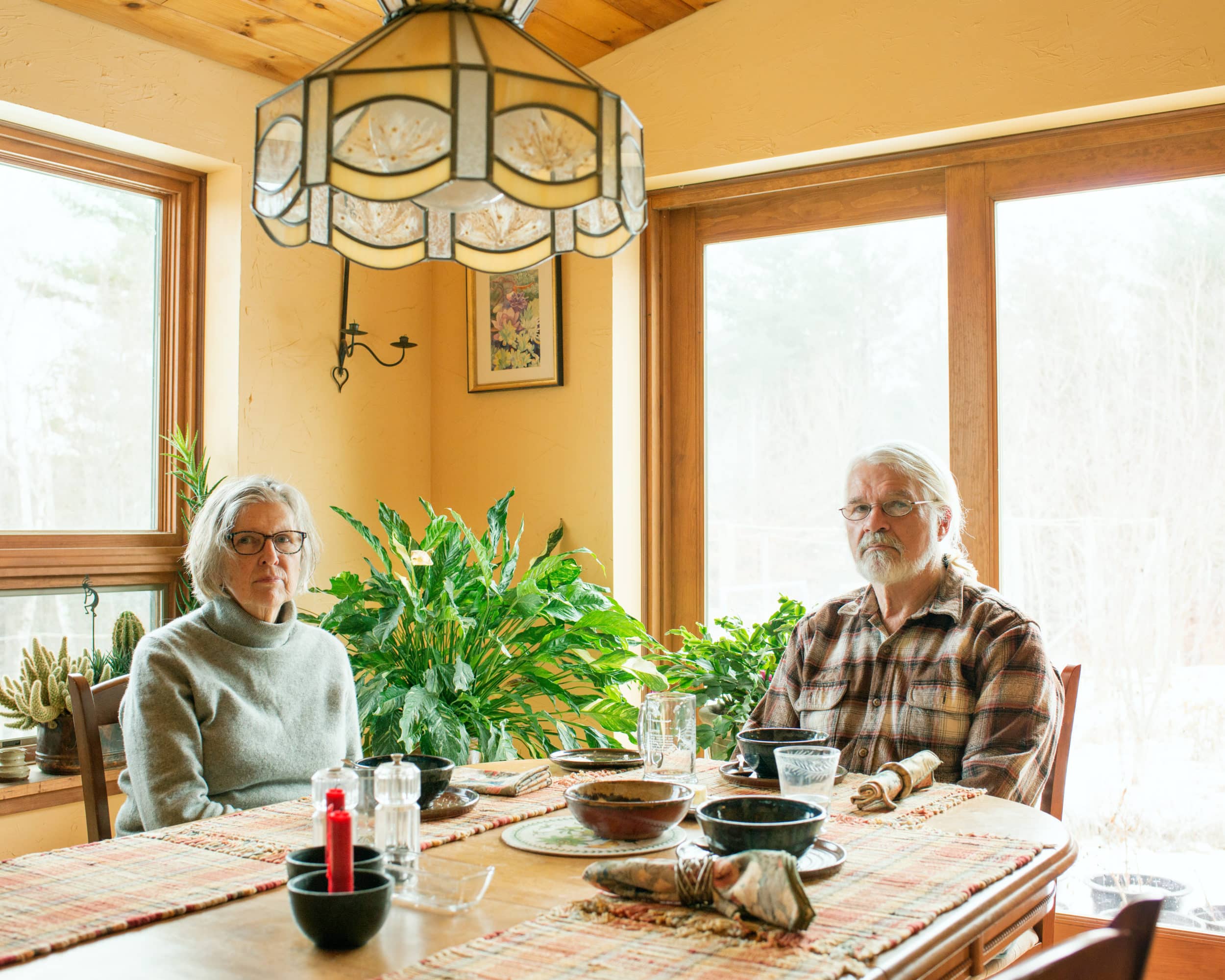 Sind Quäker die besseren Umweltschützer? Das frage ich den kleinen Kreis in Burlington. Als Antwort erhalte ich die Kontaktdaten von Ruah Swennerfelt und Louis Cox. Das seien ihre Fachleute für alles Grüne. Ein paar Tage später stehe ich nach einer langen Fahrt auf vereisten Nebenstrassen vor einer dunklen, eigenwilligen Holzkonstruktion, die man mir als Solarhaus beschrieben hat. Ich suche den Eingang. Ist es diese mit Klebern vollgekleisterte alte Holztür? Klingel hat es keine, Klopfen nützt nichts. Ich trete kurzentschlossen ein und rufe «Hallo», wie das im ländlichen Vermont noch üblich ist. Ruah und Louis sitzen in der Stube. Der Holzofen flackert. Ich rieche den Sauerteig in der grossen Schüssel auf dem Stuhl daneben. Der angebotene Sessel ist altmodisch weich. Der Raum hat viel Hippie-Charme, was zu meinem Gegenüber passt. Louis hat seinen grau gewordenen Pferdeschwanz aus den 1960er Jahren beibehalten (oder wiederentdeckt). Ruah, die sich funktional elegant kleidet, scheint nichts von ihrer jugendlichen Entschlossenheit und ihrem Engagement eingebüsst zu haben. Ich kann mir gut vorstellen, wie sie als junge Frau ausgesehen hat. In den 1980er Jahren war ich eine alleinerziehende Mutter auf der Suche nach einem spirituellen Ort, der meinen drei Kindern ein moralisches Fundament geben könnte», beginnt Ruah zu erzählen. Ihr, der Tochter einer Jüdin, gefiel das Mystische an der Quäkerreligion, die stille Andacht, in der die Anwesenden darauf warten, dass etwas gegenwärtig ist, was sie Gott, den lebendigen Christus oder das «Innere Licht» nennen. Sehr schnell kam Ruah auf den harten Boden der Realität zurück. Sie berichtet über ihr Engagement gegen die Diktaturen in Lateinamerika, die Proteste, die Verhaftungen, die Gefängnisaufenthalte.