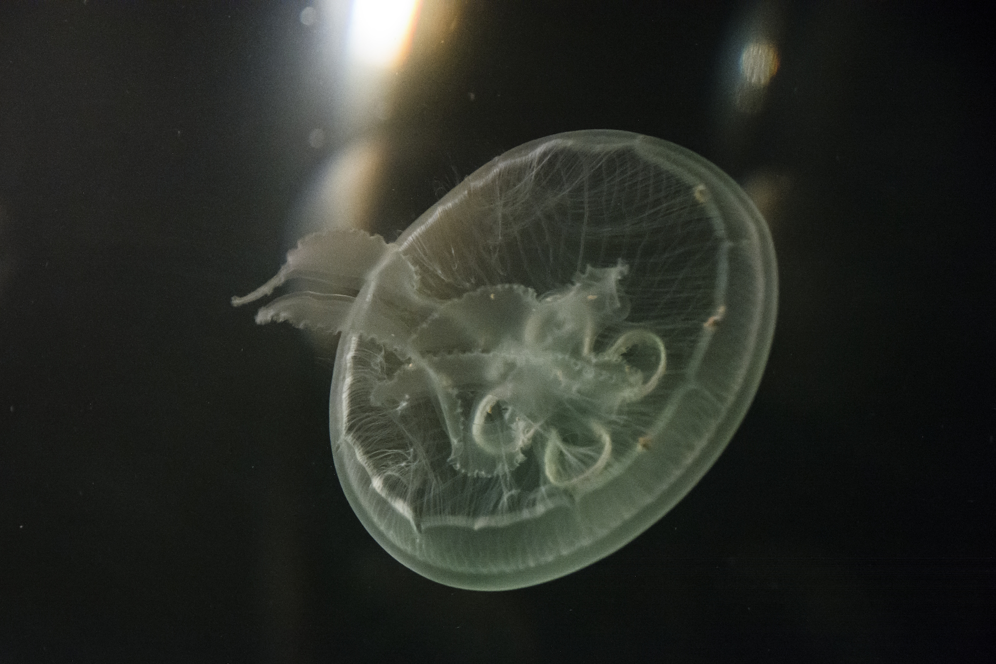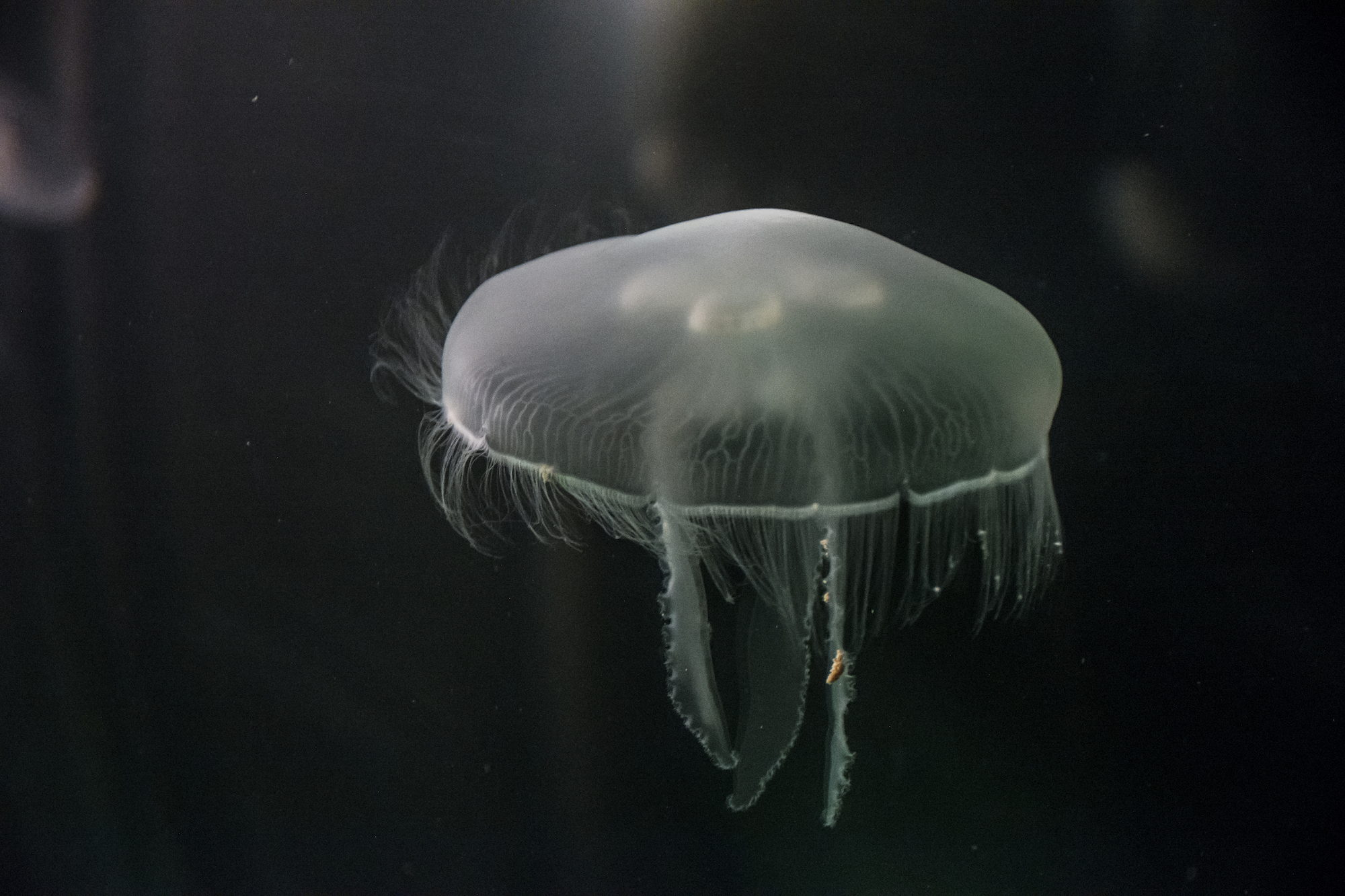 In der Installation «win > < win» (2017–2018) betrachtet das Publikum Quallen in einem Aquarium. In einem zweiten Raum hinter dem Aquarium sitzen ebenfalls ZuschauerInnen. Das Publikum auf der einen Seite betrachtet also die von Quallen umgebenen Menschen auf der anderen und umgekehrt. «Quallen profitieren anscheinend von all dem, was wir anrichten», sagt Helgard Kim Haug von Rimini Protokoll. «Die Erwärmung und die Verschmutzung der Meere lässt ihre Population wachsen. Sie werden zu einem globalen Problem und zu einer grossen Bedrohung.»