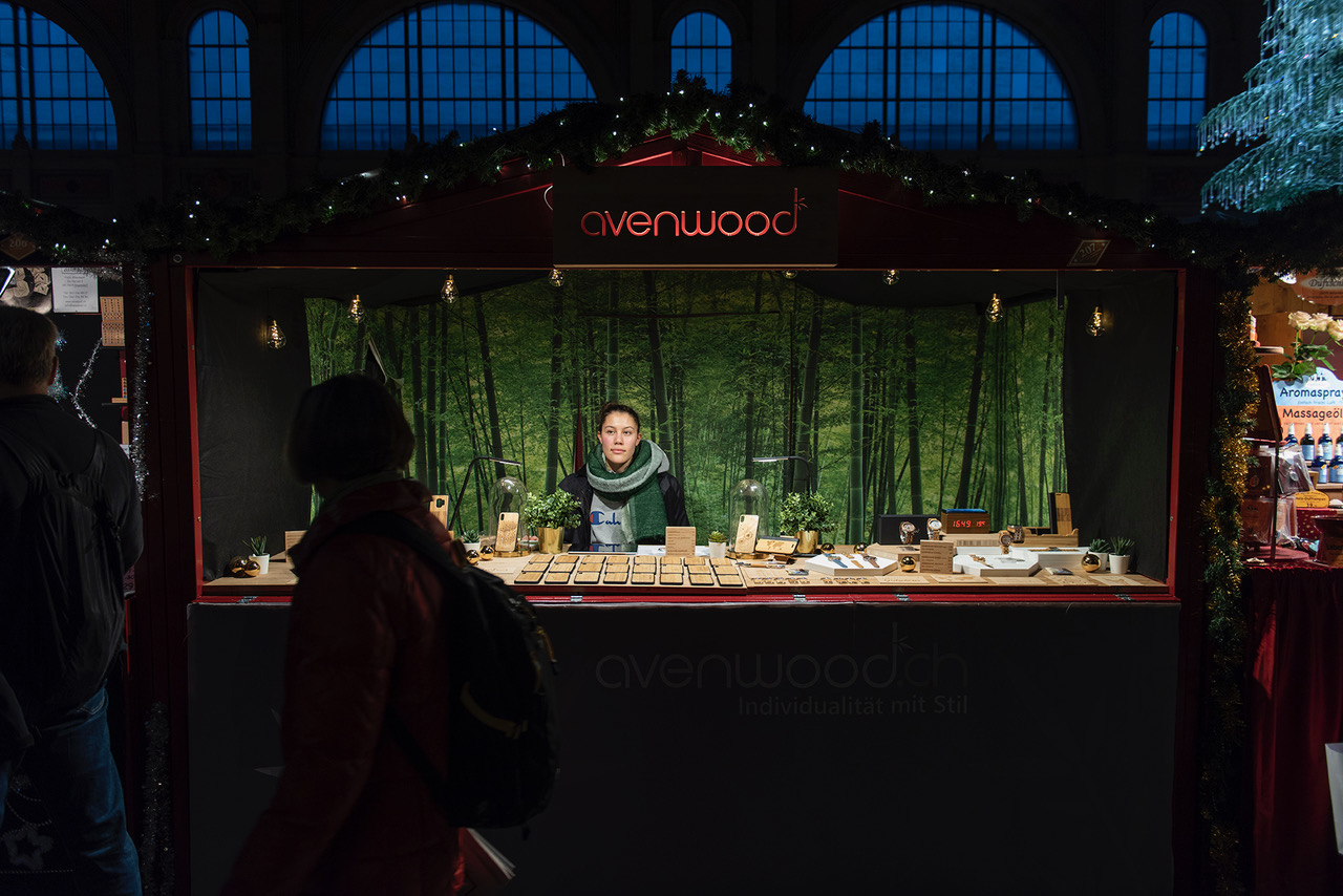Hinter dem Holz am Weihnachtsmarkt-Stand von Avenwood steckt eine ganz andere Geschichte – nämlich die aus einem fernen Land. «Unsere Produkte bestehen alle aus Bambus», erzählt Lena, die für das Start-Up am Weihnachtsmarkt arbeitet. Und tatsächlich: Handyhüllen, Uhren, Postkarten, Schlüsselanhänger – sie alle sind aus dem asiatischen Süssgras gefertigt.