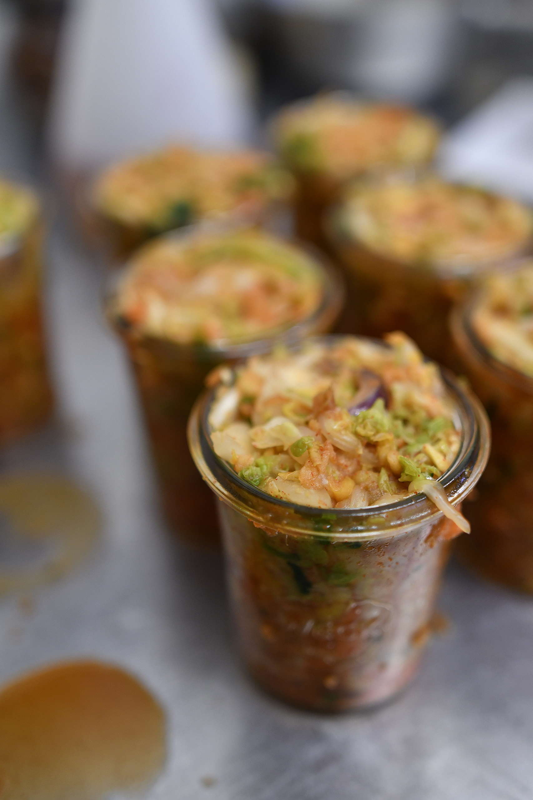 Einmachgläser so weit das Auge reicht – gefüllt mit Kimchi, Sauerkraut, Rotkraut, Zwiebeln, Randen, Rotkohl, und, und, und. Das ist der Weihnachtsmarkt-Stand von Grassrooted. «Unser Sortiment umfasst diverses zweitklassiges und überschüssiges Frischgemüse oder Obst», erklärt Dominik Waser, einer der Gründer des Vereins. Also Nahrungsmittel, die eigentlich im Mülleimer hätten landen sollen.