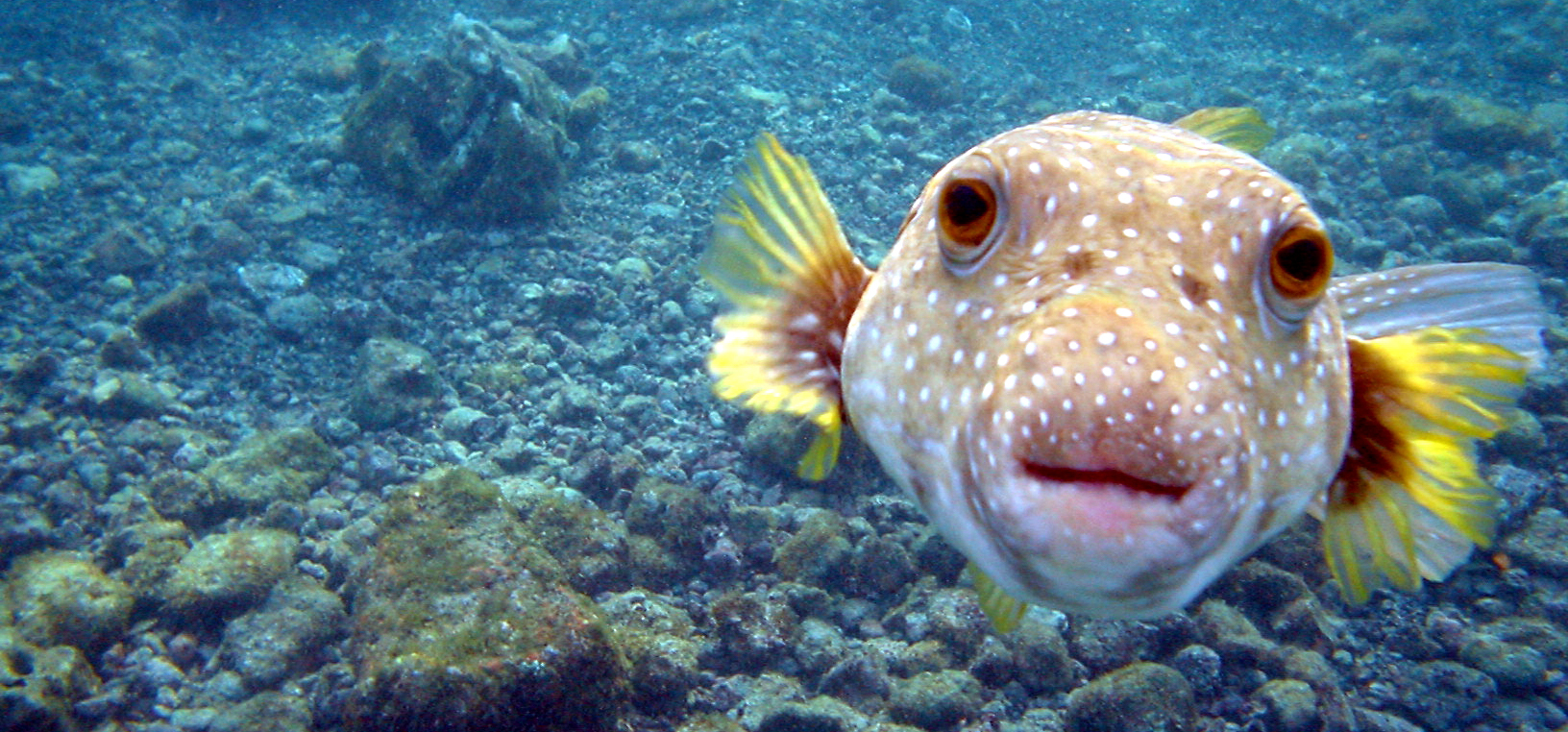 Ein japanischer Kugelfisch schafft mit grenzenloser Geduld und Sorgfalt geometrische Kunstwerke, um paarungswillige Weibchen zu beeindrucken. Wir finden, dass dieser facettenreiche Meeresbewohner es verdient, porträtiert zu werden.
