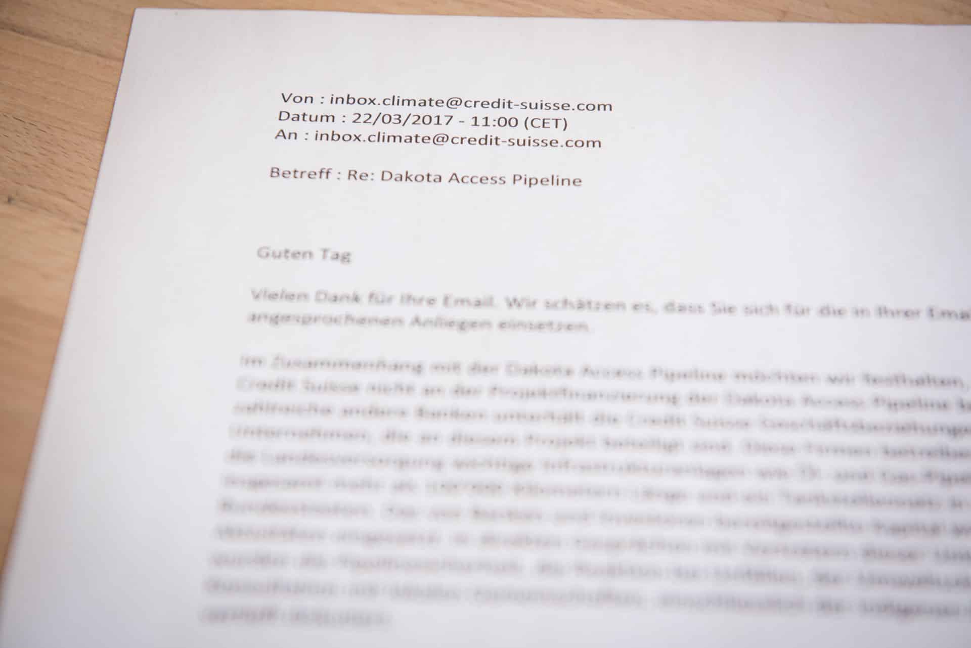Hunderte Greenpeace-Supporterinnen und -Supporter haben der Credit Suisse in den letzten zwei Wochen unbequeme Fragen gestellt zu ihren dreckigen Deals mit Pipeline-Firmen. Die Antworten der Bank lassen, gelinde gesagt, zu…