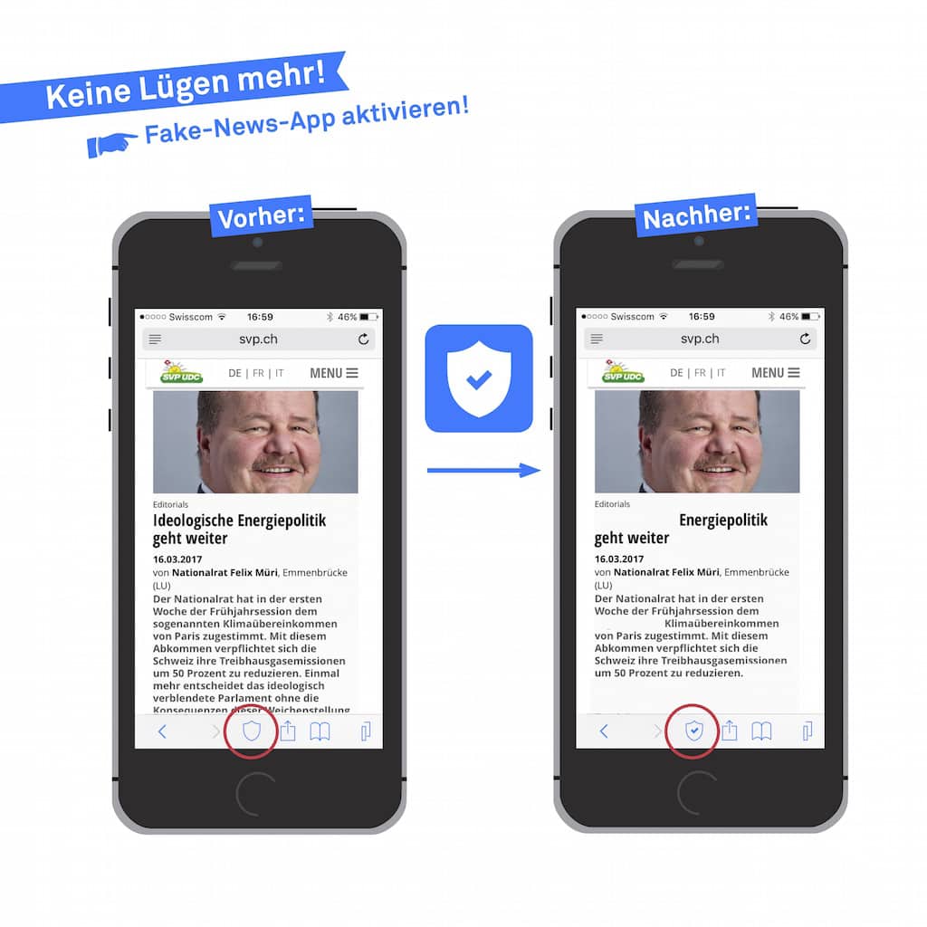 Fake-News und alternative Fakten sind heute allgegenwärtig, deshalb testen Greenpeace Schweiz und die Schweizerische Energie-Stiftung (SES) eine neue App im Rahmen der Abstimmungskampagne zur Energiestrategie 2050. Die «Eco Lie Detector App» wird zum ersten Mal in der Schweiz als digitaler Lügendetektor fungieren und alle Falschinformationen direkt aus dem Bildschirm entfernen.