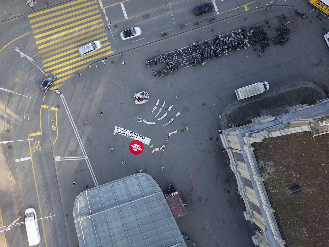 Ende November setzen die Vereinten Nationen die Verhandlungen über ein internationales Abkommen gegen die Plastikverschmutzung fort. Heute morgen weisen Greenpeace-Aktivist:innen in Bern mit einem riesigen Fossil aus Plastikabfall darauf hin, dass die Plastikproduktion reduziert werden muss.