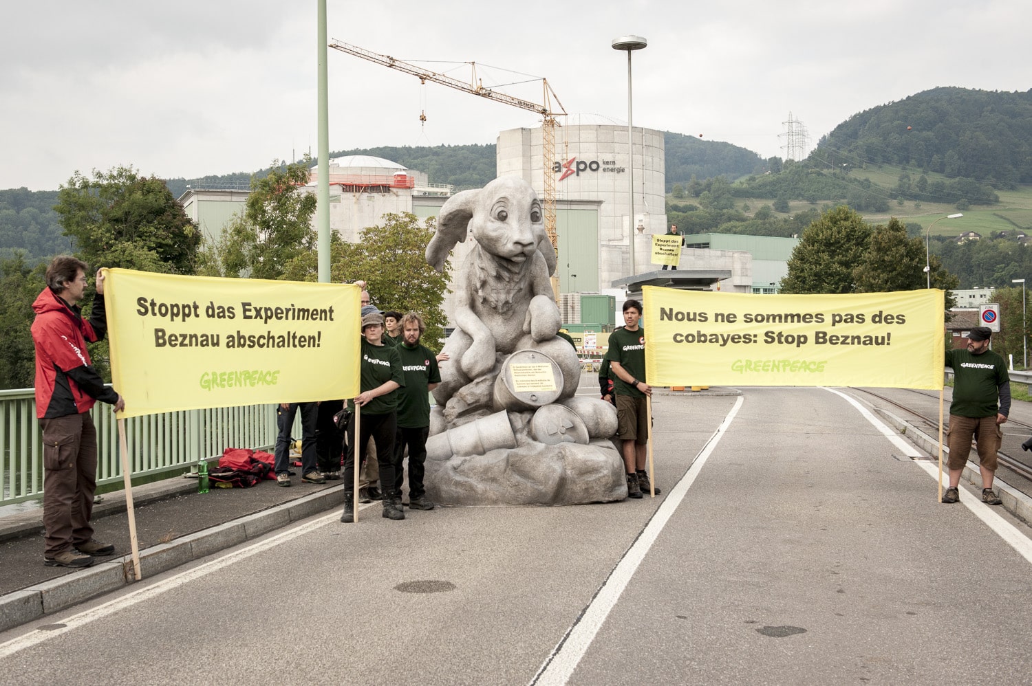 Ein Dutzend Greenpeace-Aktivistinnen und Aktivisten haben am Sonntag Morgen vor dem ältesten AKW der Welt ein drei Meter grosses und mehrere hundert Kilogramm schweres Mahnmal aufgestellt, um in Erinnerung zu…