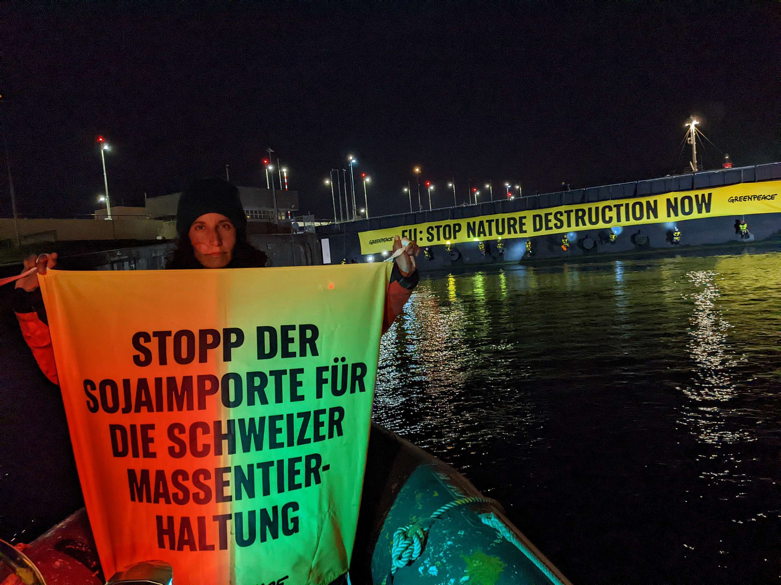 Greenpeace-Aktivist:innen gegen Sojaimporte für Massentierhaltung