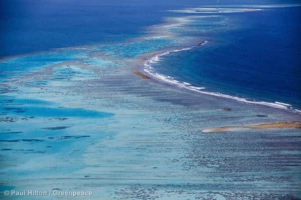 Korallenriff im Addu Atoll in den Süd-Malediven © Paul Hilton / Greenpeace Dreiviertel des Kampagnenteams haben die Rainbow Warrior in den Malediven am Vorabend bereits verlassen um die Dokumentationsarbeit einer…