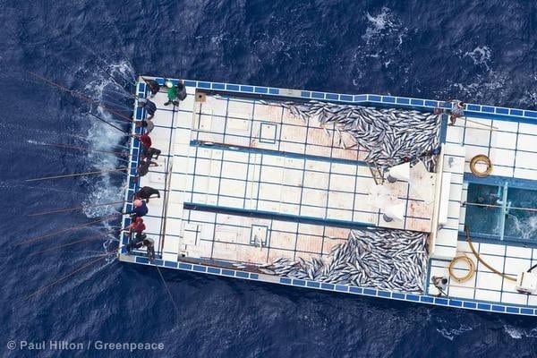 Montag, 5. November 2012 Pole&Line-Fischer mit ihrer Beute (Echter Bonito) ©Paul Hilton / Greenpeace Heute habe ich eine Tonne Thunfisch gesehen. Buchstäblich. Ich war Zeugin, wie jeder einzelne Fisch an…