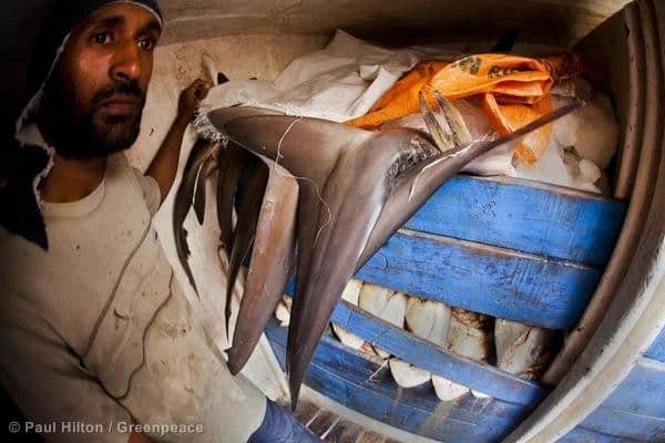 Illegal gefangene Haie im Indischen Ozean © Paul Hilton / Greenpeace Seit einer Woche nun, ist das Greenpeace Schiff, die Rainbow Warrior, auf der Überfahrt von Mauritius zu den Malediven,…