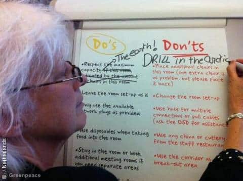 Zoom Freitag, 13. Juli 2012 Die Geschäftsführerin von Greenpeace Niederlande, Sylvia Borren, übernimmt anstelle des “ehemaligen” Shell-Geschäftsführers Peter Voser notwendige Umstruktuierungsmaßnahmen für Shell. © Greenpeace Freitag, 13. Juli 2012…