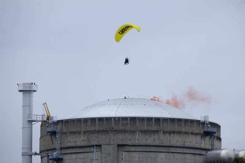 Greenpeace-Aktivist im Hochsicherheitsbereich des AKW Bugey