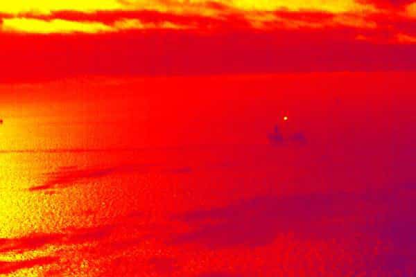 Zoom Donnerstag, 29. März 2012 Gasplattform Elgin. Von blossem Auge nicht erkennbar, auf der Infrarotaufnahme deutlich zu erkennen: Die Gasflamme, die normalerweise überschüssiges Gas verbrennt lodert noch immer. Im ungünstigsten…