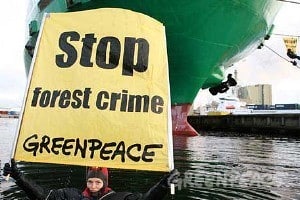 Greenpeace protestiert gegen die Zerstörung von Urwäldern in Lappland