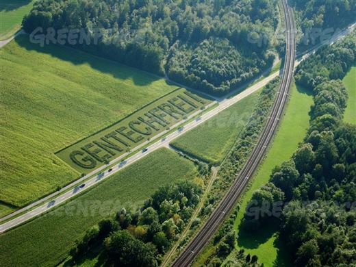 Bern-Zürich, 24. August 2009: An der Bahnstrecke Bern-Zürich haben Greenpeace-Aktivisten im April den Schriftzug «gentechfrei» gesät. Dieser ist mittlerweile gewachsen und gut sichtbar. Greenpeace fordert damit eine Verlängerung…
