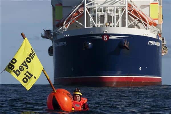 Greenpeace-Protest im September gegen ein riesiges Bohrschiff von Chevron vor der britischen Küste. Die Aktivisten verlangen «Go Beyond Oil» / © Will Rose / Greenpeace Seit Wochen tritt vor der…