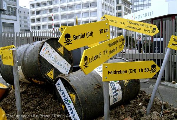02/12/2004. Greenpeace fordert von Novartis die Totalsanierung ihrer Chemiemülldeponien / © Greenpeace / Ex-Press / David Adair Das BAFU scheint aus dem Unfall- und Altlastenstandort Schweizerhalle nicht gelernt zu…