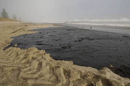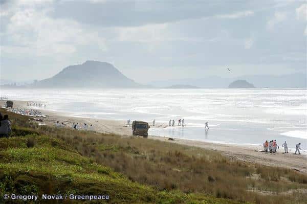 ölverschmutzte Papamoa Beach, © Greenpeace / Simon Grant Das Containerschiff Rena , das vor der neuseeländischen Küste auf ein Riff aufgelaufen ist, hat Berichten der staatlichen Schifffahrts- und Meeresschutzbehörde (MNZ)…