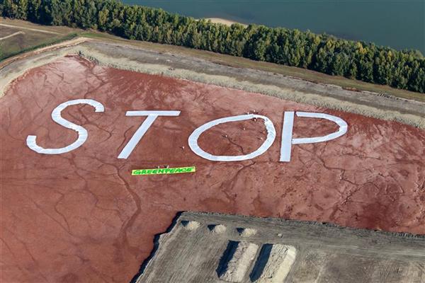 Kurz vor dem Jahrestag der Rotschlammkatastrophe in Kolontár rollten Aktivisten ein 70×200 Meter grosses Transparent mit der Aufschrift „STOP“ auf einem als Giftmülldeponie genutzten Rotschlammbecken im ungarischen Almásfüzitö aus. Kurz…