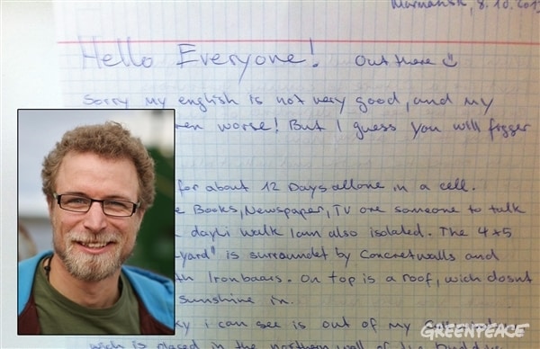 Bilder aus einer Gefängniszelle in Murmansk. © Greenpeace Die 28 in Russland für einen friedlichen Protest gegen Ölbohrungen in der Arktis inhaftierten Greenpeace-Arktisschützerinnen und -Arktisschützer sowie zwei Journalisten werden diplomatischen…