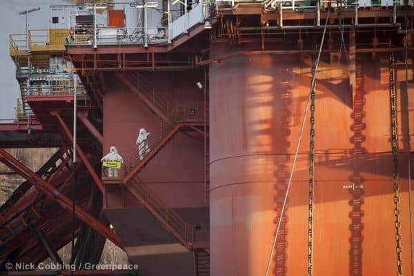 Greenpeace-Eisbären klettern auf Statoil-Bohrinsel / Ölkonzern sistiert Ölbohrungen