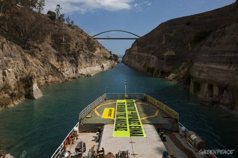 Die «Arctic Sunrise» im Kanal von Korinth © Philip Reynaers / Greenpeace «Die Politiker hören sowieso nicht zu…». Dies scheint die allgemeine Reaktion der Fischer hier in Griechenland zu…