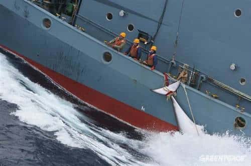 1.5.2006: Walfänger an Bord eines Schiffes der japanischen Walfangflotte im Südpolar Meer. © Greenpeace / Jeremy Sutton-Hibbert Eine Arbeitsgruppe der Internationalen Walfangkommission (IWC) schlägt einen mehr als…