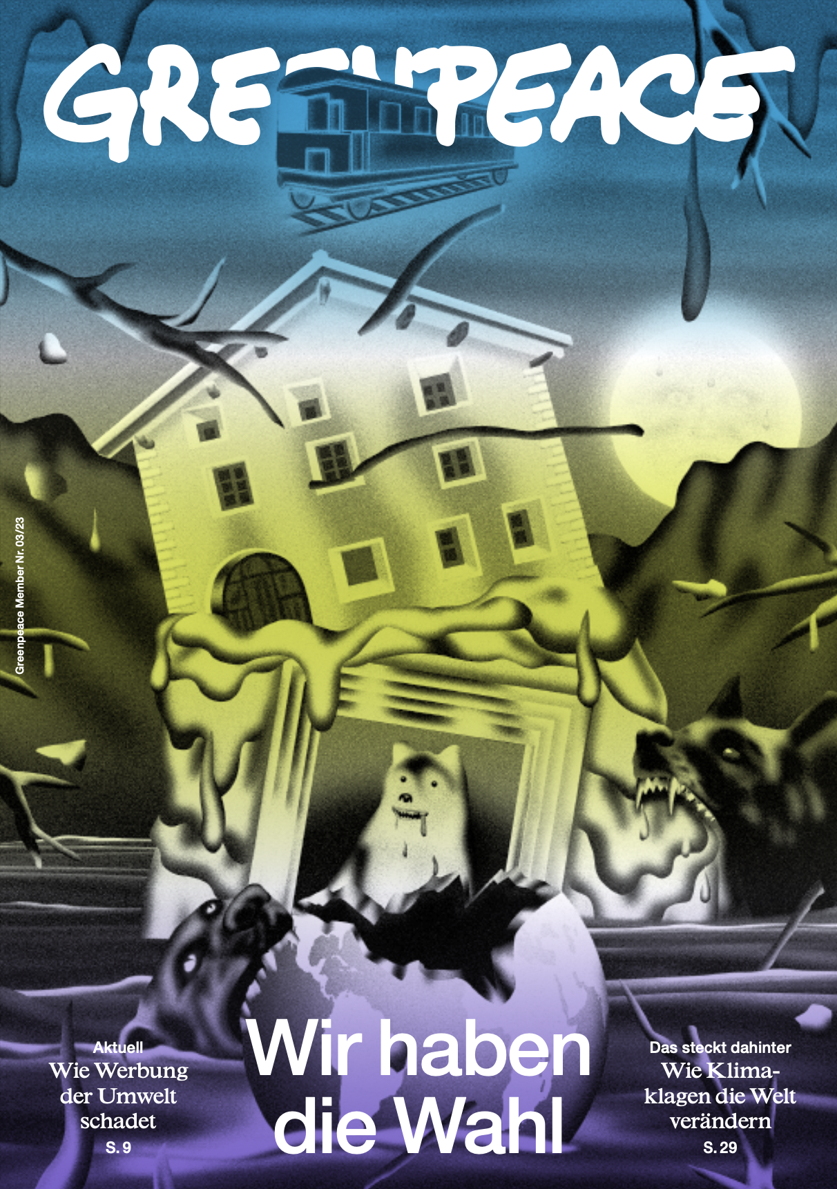 Hier findest du alle Ausgaben des Greenpeace-Magazins online. Die Zeitschrift wird dreimal im Jahr an Mitglieder verschickt, die einen Jahresbeitrag von mind. 84 CHF bezahlen. Mehr Infos zu Spendemöglichkeiten gibt es hier.