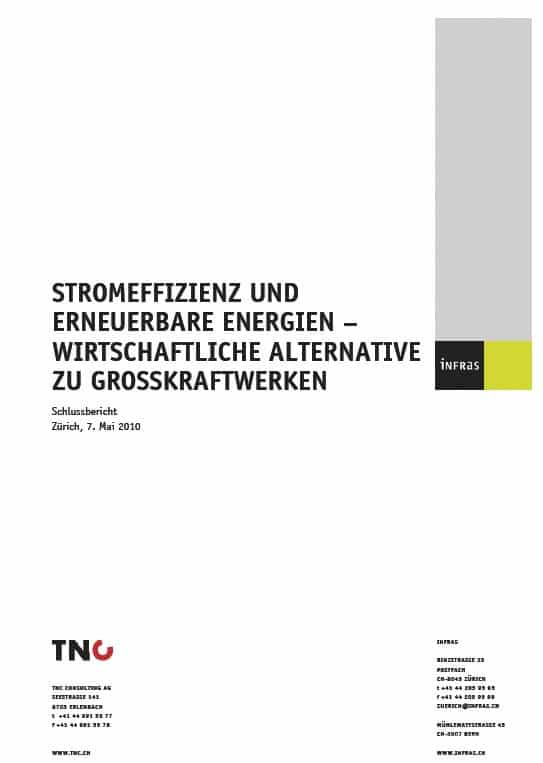 Stromeffizienz und erneuerbare Energien 2010 Broschüre Der Bericht zeigt Wirtschaftliche Alternativen zu Grosskraftwerken auf. Bericht herunterladen