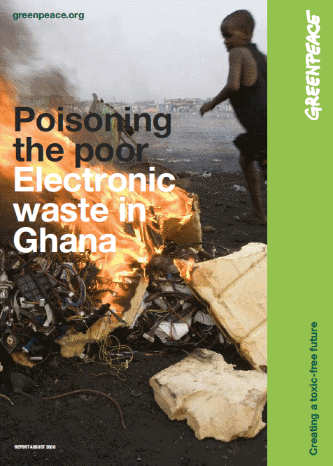 Kinder hocken vor offenem Feuer, umgeben von Müll und nehmen Computer, Handys und anderen aus Europa stammenden Elektroschrott auseinander. Oft schützen weder Handschuhe noch Atemmasken vor den Giften im Qualm,…