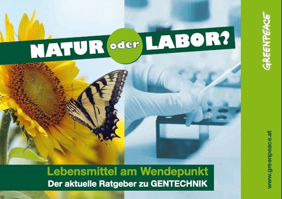 Gentechnik: Natur oder Labor Obst und Gemüse Ratgeber Informationsbroschüre von Greenpeace Österreich über die Gefahren der Gentechnologie. Bericht herunterladen