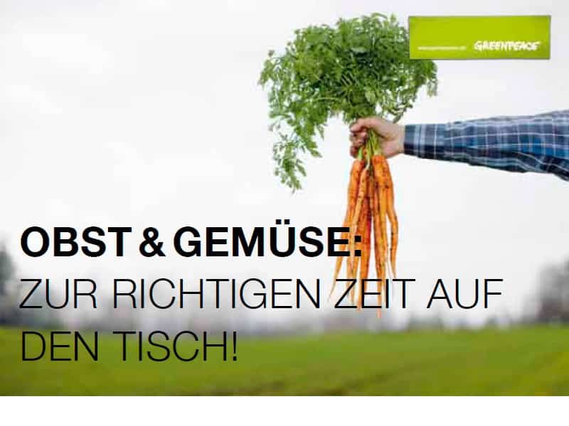 Obst & Gemüse: Zur richtigen Zeit auf den Tisch! Informationsbroschüre über Gentechnologie in Lebensmitteln, die Situation in der Schweiz und die Forderungen von Greenpeace. Enthält eine Saisontabelle für Früchte und…