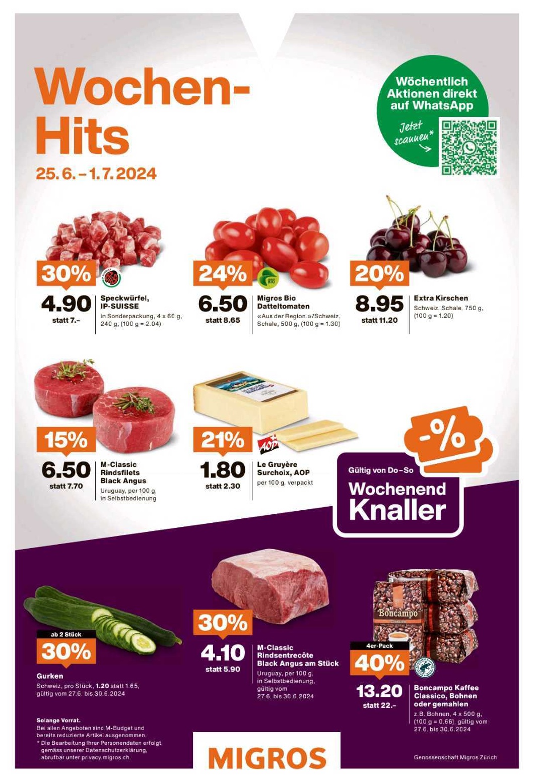 An den Fassaden der Hauptsitze von Coop und Migros, in Basel und Zürich, entrollten Greenpeace-Aktivist:innen heute riesige Banner. Vor den Gebäuden protestieren zudem Aktivist:innen mit Schildern. «Zukunft im Sortiment» oder «Weniger Tierprodukte, mehr Verantwortung» ist darauf zu lesen. Die Aktivist:innen suchen auch das Gespräch mit Passant:innen und Kund:innen der Detailhändler und informieren über die ungenügenden Klimaschutz-Bemühungen von Coop und Migros.