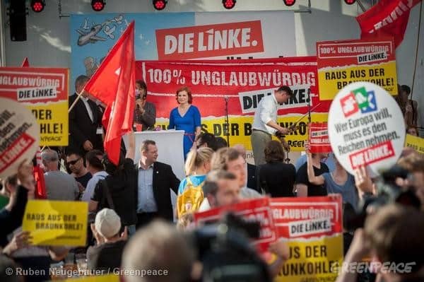 Greenpeace-Aktivisten hatten zuletzt mit einem achttägigen Protestcamp in der Berliner Parteizentrale der Linken auf die widersprüchliche Braunkohlepolitik der Partei hingewiesen. Auch zahlreiche hochrangige nationale Parteimitglieder hatten sich inhaltlich auf die Seite von Greenpeace gestellt und die Brandenburger Minister aufgefordert, «nein» zu stimmen. Doch die lokale Partei gewichtete 724 potentielle Vattenfall-Arbeitsplätze höher als die Heimat von 800 Menschen. Der geplante Braunkohletagebau ist so gross wie 15’126 Fussballfelder, so gross, dass er die Stadt Zürich locker verschlucken könnte. Riesige Flächen Wälder, Wiesen und Wohnorte würden dabei verschwinden, jährlich mehrere hundert Kilogramm giftiges Quecksilber, Arsen, Cadium und Feinstaub die Umwelt belasten.