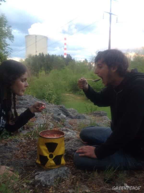 Auf unserer 8-tägigen Kanufahrt unter dem Motto «Kanukraft statt Atom» führen wir regelmässig Aktivitäten durch und berichten darüber auf unserem Blog sowie auf Twitter. Mit der Tour machen wir auf die Gefahren aufmerksam, die von den überalterten AKW in der Schweiz ausgehen. «Die Uralt-Reaktoren sind tickende Zeitbomben. 40 Jahre sind genug, Beznau und Mühleberg müssen sofort vom Netz!», meinen wir Kanut_innen. Schon letzten Samstagabend feierten wir unseren Tourbeginn vor dem AKW Mühleberg mit der Openair Party «Mühleberg austanzen», wobei wir in 70er-Jahre-Klamotten angereist waren, um so den Bogen zum Alter des AKW zu schlagen und auf die kantonale Abstimmung «Mühleberg vom Netz» (18. Mai) hinzuweisen. Leider wollte die Betriebswache nicht mittanzen.