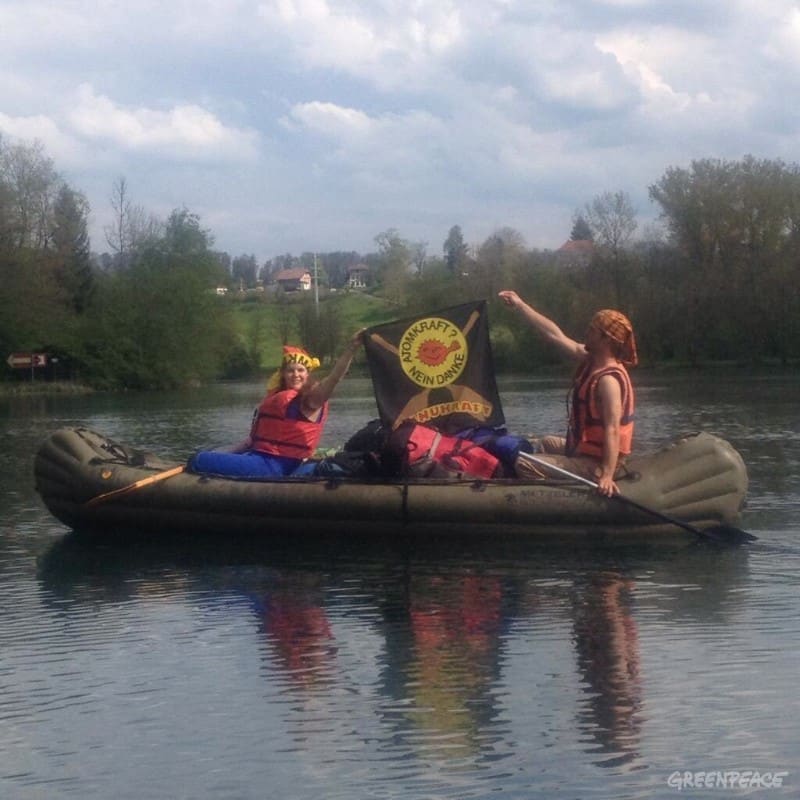 Seit letztem Sonntagmorgen fahren wir – eine handvoll Greenpeace-Freiwillige – während 8 Tagen auf der Aare mit dem Kanu vom Atomkraftwerk Mühleberg nach Gösgen, Leibstadt, Beznau und schliesslich den Rhein runter nach Basel. Nachdem wir an allen fünf Schweizer AKWs vorbeigefahren sind treffen wir am Sonntag in der Rheinstadt Basel auf das Greenpeace-Schiff Beluga.
