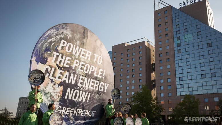 Greenpeace Aktivisten fordern Umstieg auf 100% Erneuerbare